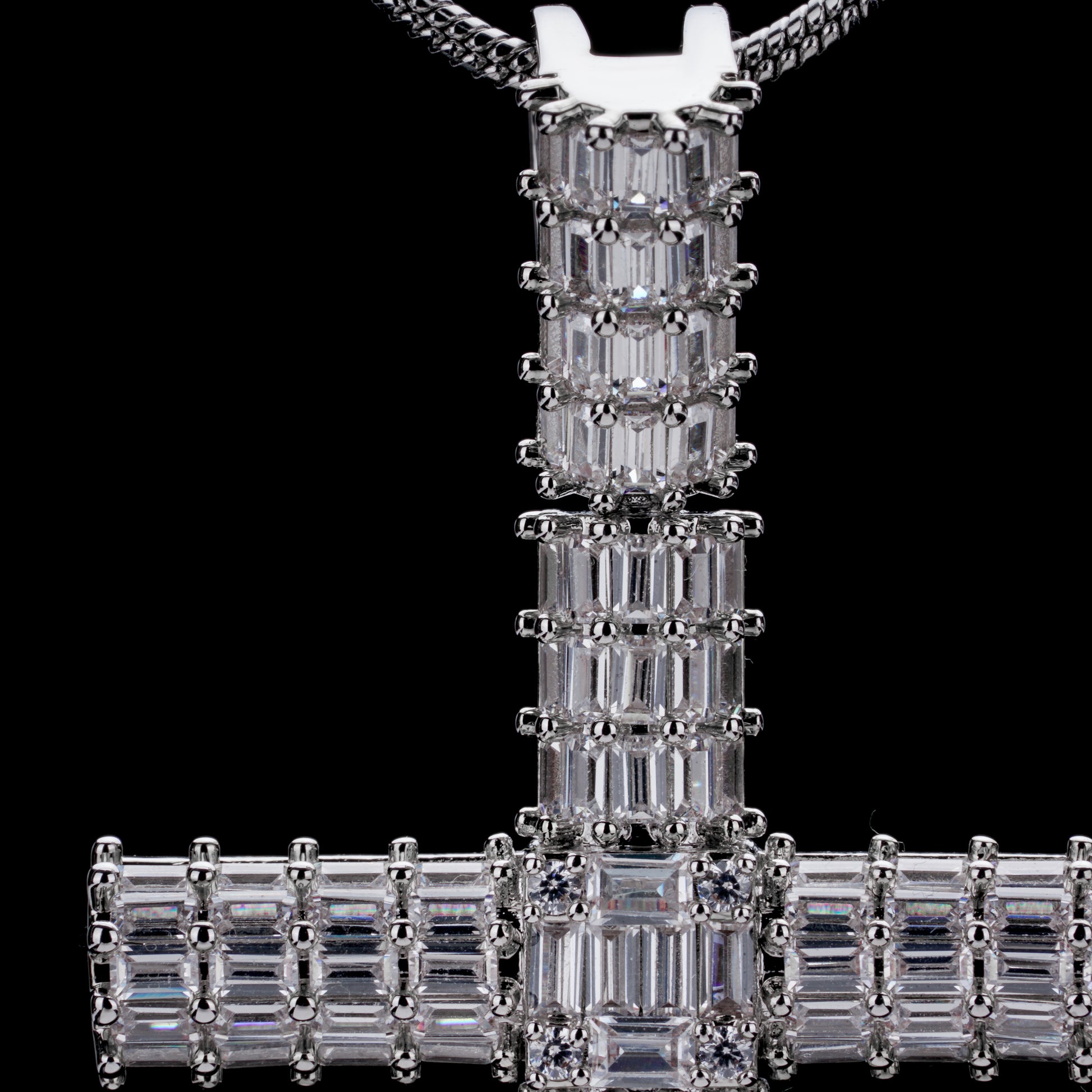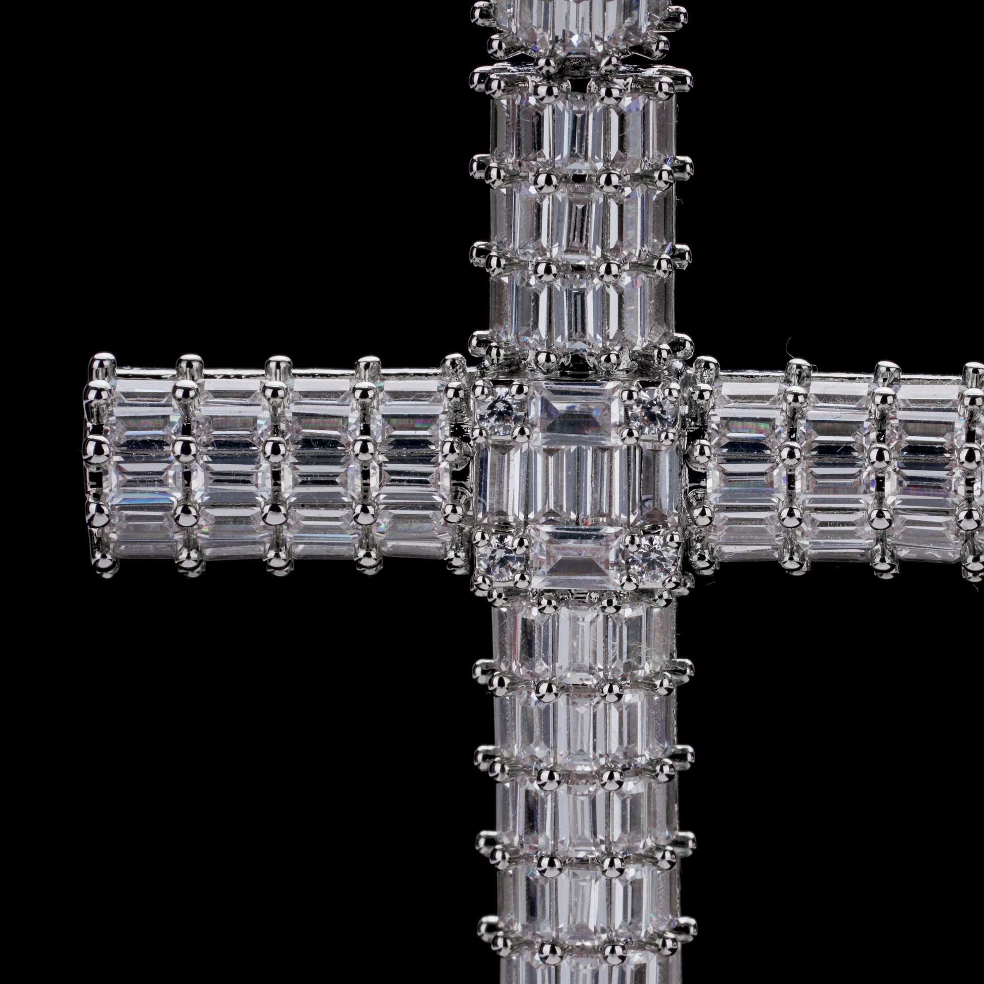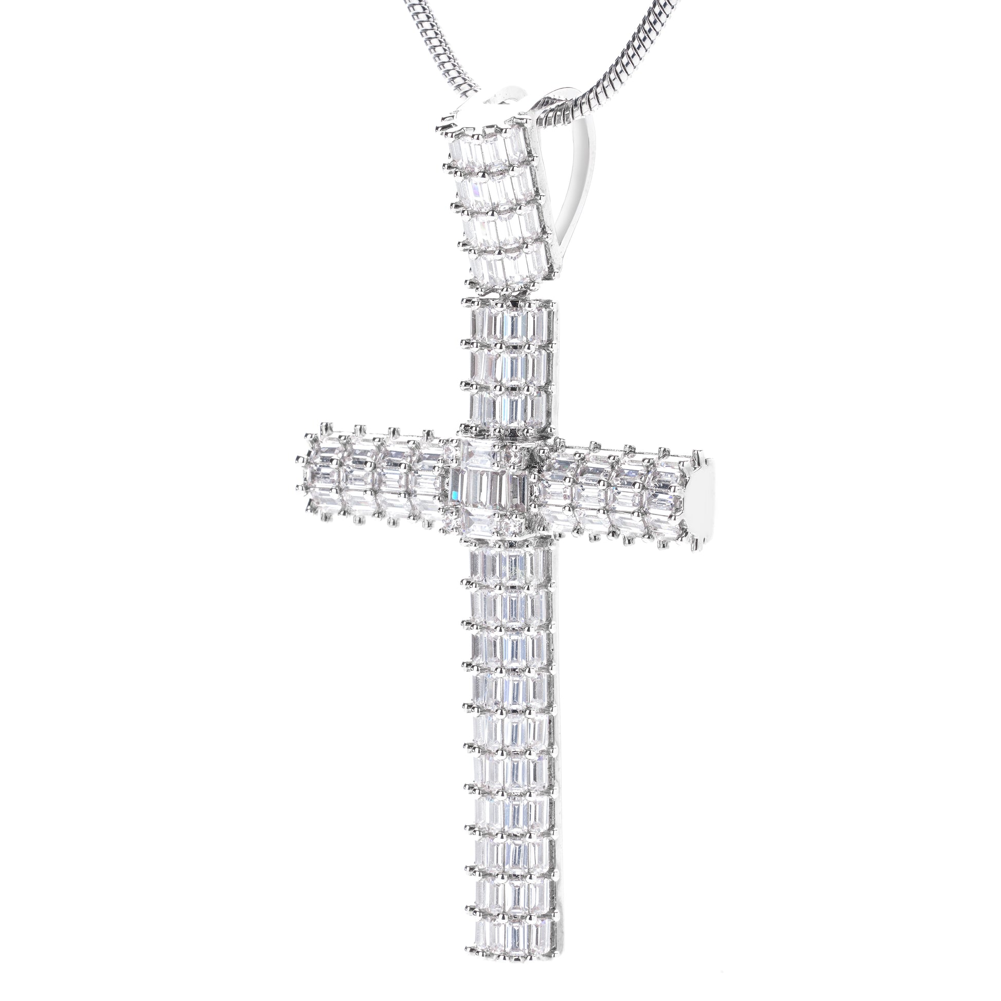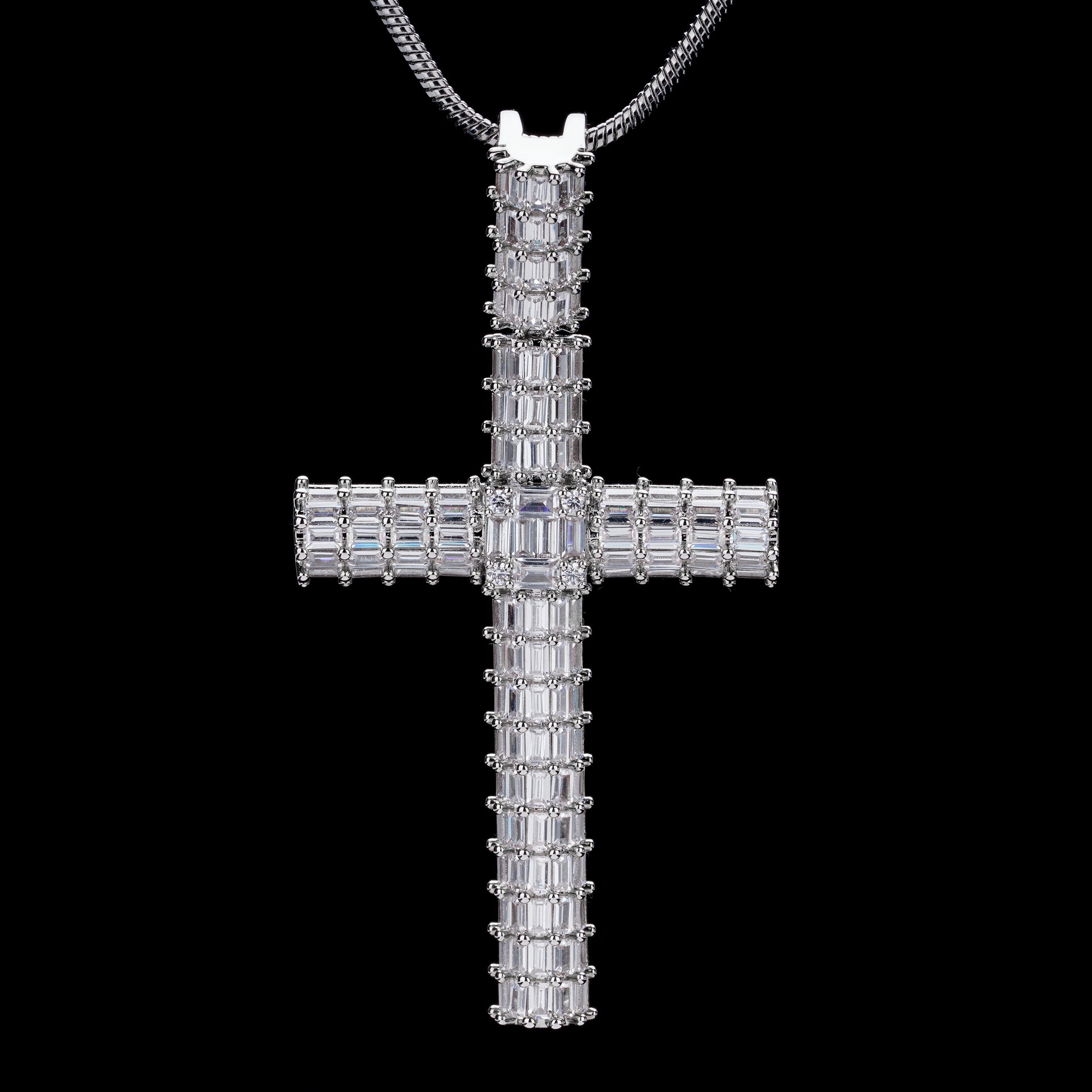 Featuring double-row, square-cut 3A+ cubic zirconia stones, meticulously set using a prong setting technique, the cross-shaped design boasts clean lines. The layered design of the double-row cubic zirconia gives the pendant a sense of depth and dimension. It features a 6-layer 14K real gold/white gold plating, with a thickness of 0.1u, ensuring long-lasting color retention and resistance to oxidation and fading.