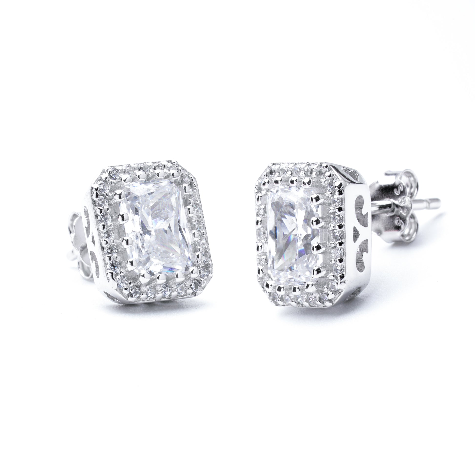 S925 Ice Flower Cut Rectangular Stud Earrings