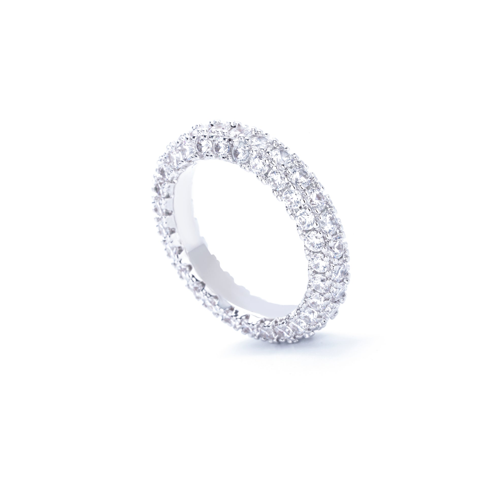 Featuring carefully selected zircon stones in a full-pavé setting, the three-sided wrap-around design allows the stones to refract brilliant light from all angles, achieving a fire and brilliance comparable to real diamonds. It shines dazzlingly under different lighting conditions. The ring is crafted with a high-quality alloy base, treated with electroplating and polishing processes, resulting in a delicate texture that resists oxidation and fading, ensuring comfortable wear and a perfect fit to the finger.
